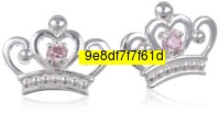 Disney Princess Sterling Silver Pink Crown Shaped Stud Earrings