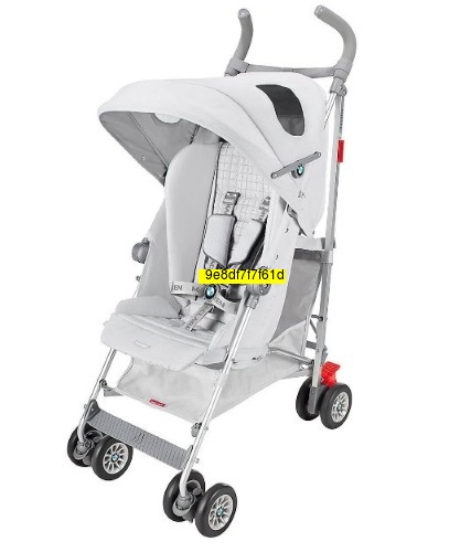 5-point harness with BMW insignia buckle keep child safe and comfortable, includes a removable, ergonomic bucket seat liner for cushioned comfort Carry strap, foot-operated linked brakes, lockable front swivel wheels, one-hand, compact umbrella fold, carry strap foot-operated linked brakes, lockable front swivel wheels One-hand, compact umbrella fold, high performance aluminum chassis, removable washable seat fabric